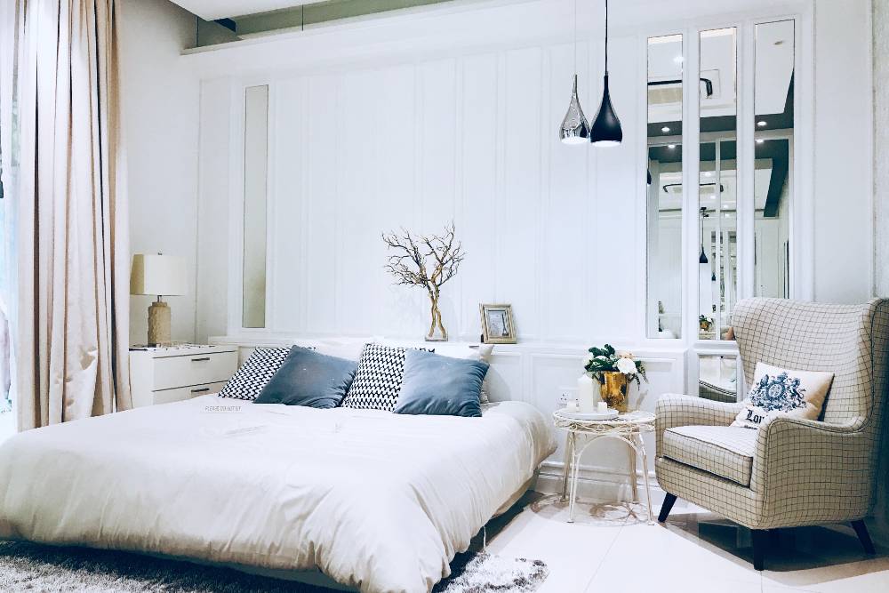 Relaxing bedroom interiors with custom furniture, wardrobes, lighting, and décor elements.